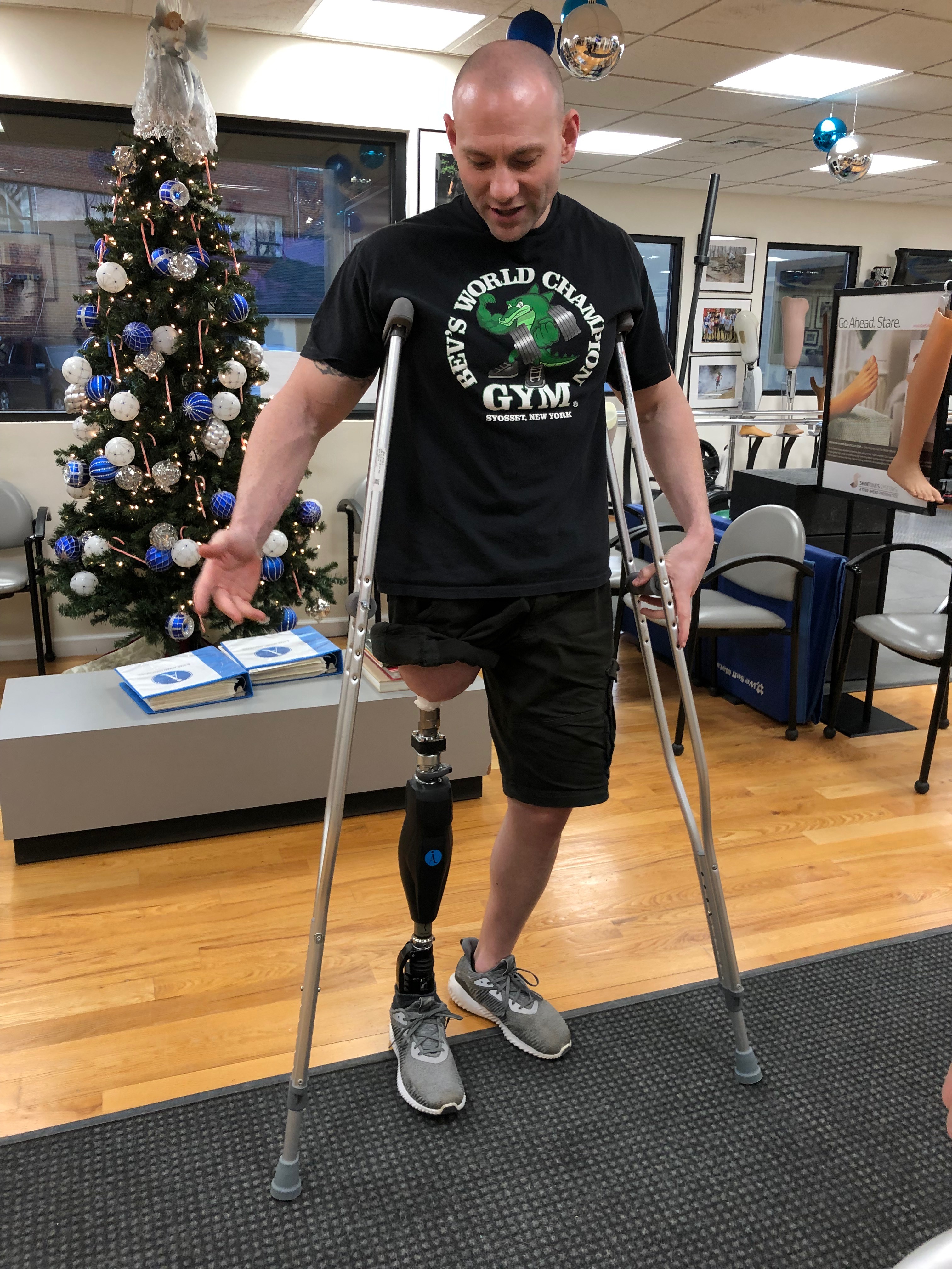 After having the prosthetic attached I was now at the stage to slowly start using crutches. I was extremely cautions after having the leg connected and would mostly stand in place everyday and would continue to use the scale for bone loading. I was not ready to put full weight on the leg yet so I was still not doing much getting around. From December 26th to January 22rd I would continue to spend about an hour each day standing and cautiously walking in my home with crutches. There were days were I felt a bit lost in my progress becasue I was not yet ready to put my full body weight on the leg and felt like I wasn’t really progressing. In my mind I was doing the same thing as I was doing before except I had the prosthetic attached to me now.