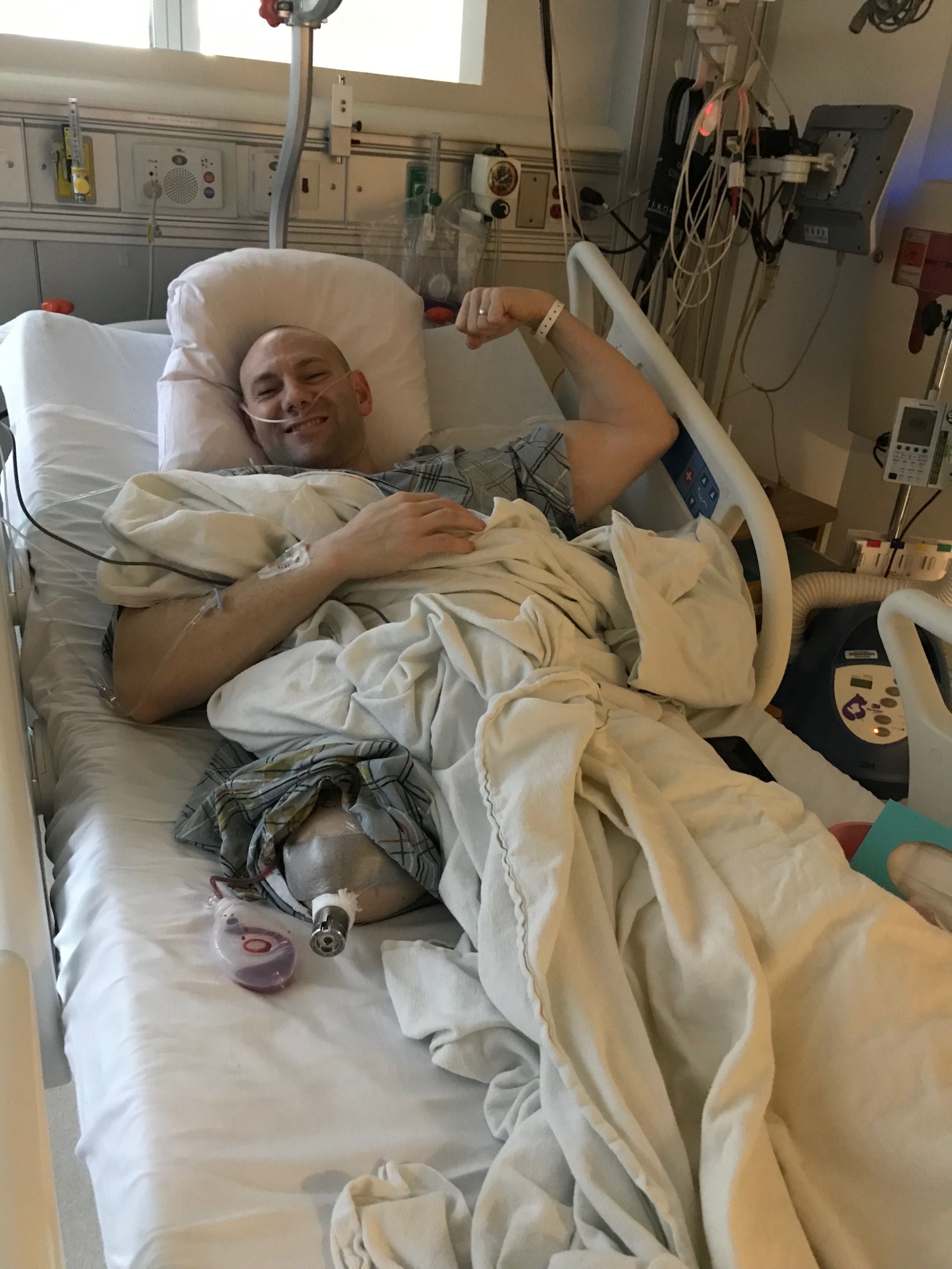 This photo was taken 8 weeks ago as I am waiting to be taken into the operating room. It was without question one of the most anxious moments I ever experienced in my life. I just wanted to wake up and hear that everything went great and its time to start learning to walk again.